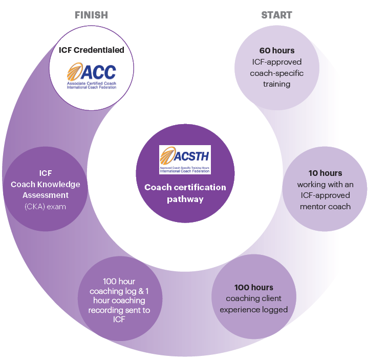 The ICF requires participants to complete the process below for accreditation purposes and takes on average 12 months to complete