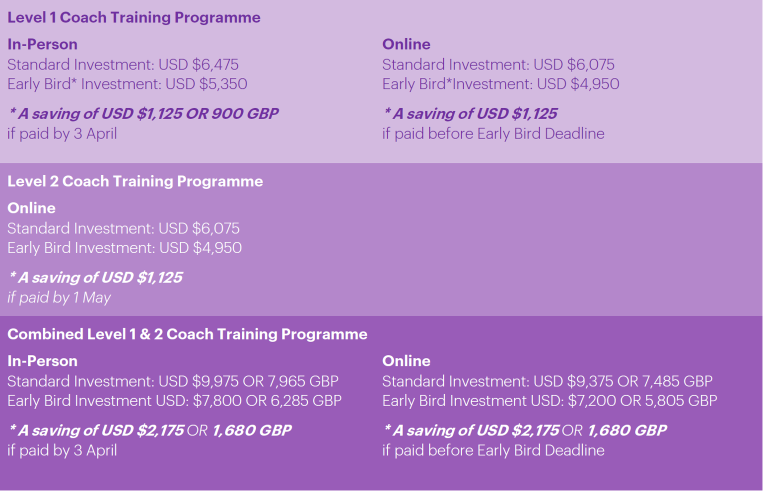 - Ongoing access to coaching supervision sessions for Level 2 participants